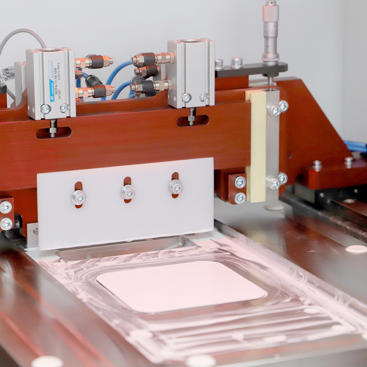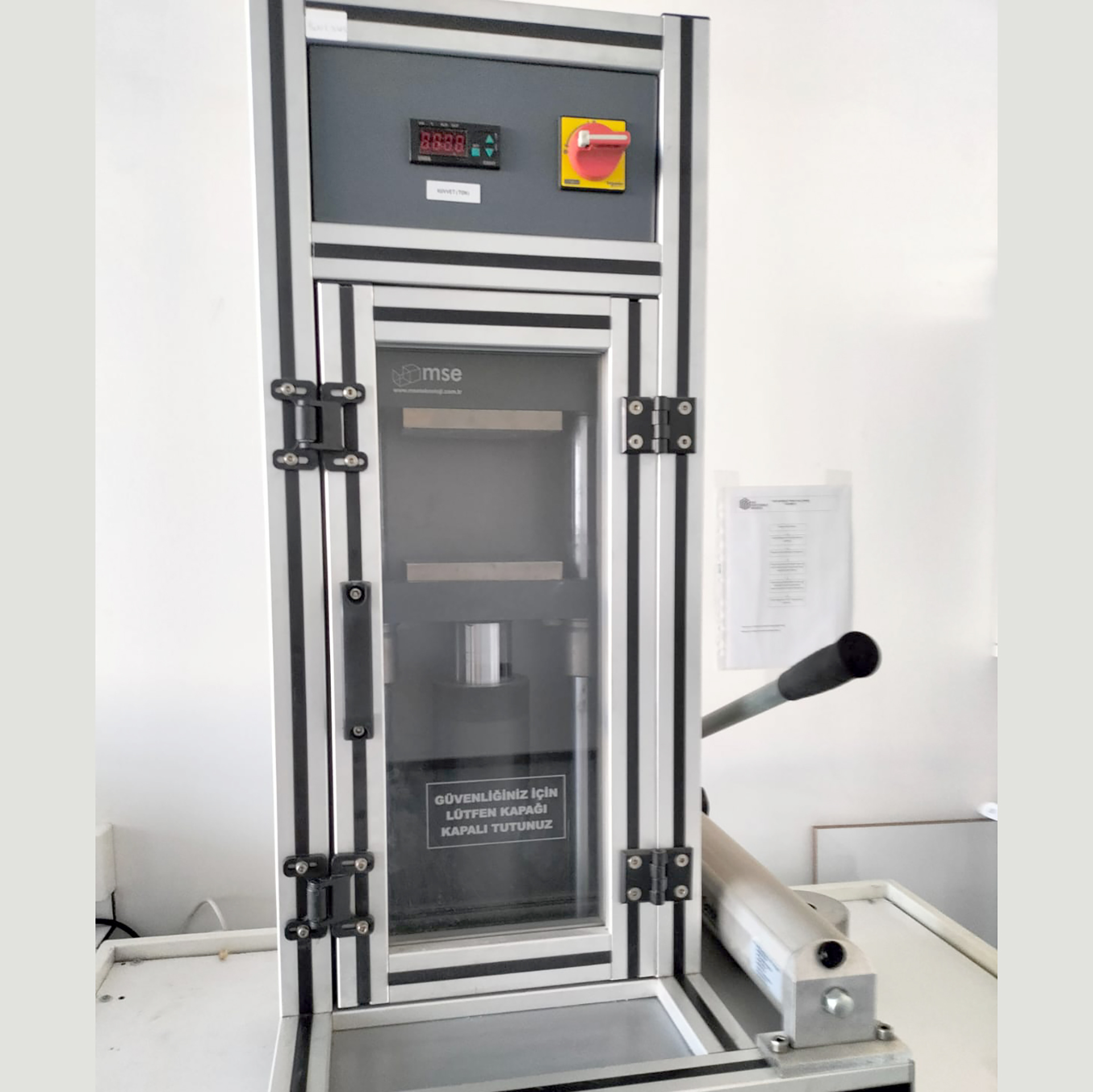 Tek eksenli pres Tek eksenli pres, özellikle toz metalurjisi uygulamalarında toz malzemelerin belirli bir kalıp içerisinde tek yönde basınç uygulanarak şekillendirilmesini sağlayan temel bir şekillendirme ekipmanıdır. Bu sistemlerde basınç genellikle üstten uygulanır ve malzeme kalıp boşluğunu doldurarak istenilen geometriye sahip yaş parça (green body) haline getirilir. Kapasite: 20 ton Tabla ebatları: 100x150 |